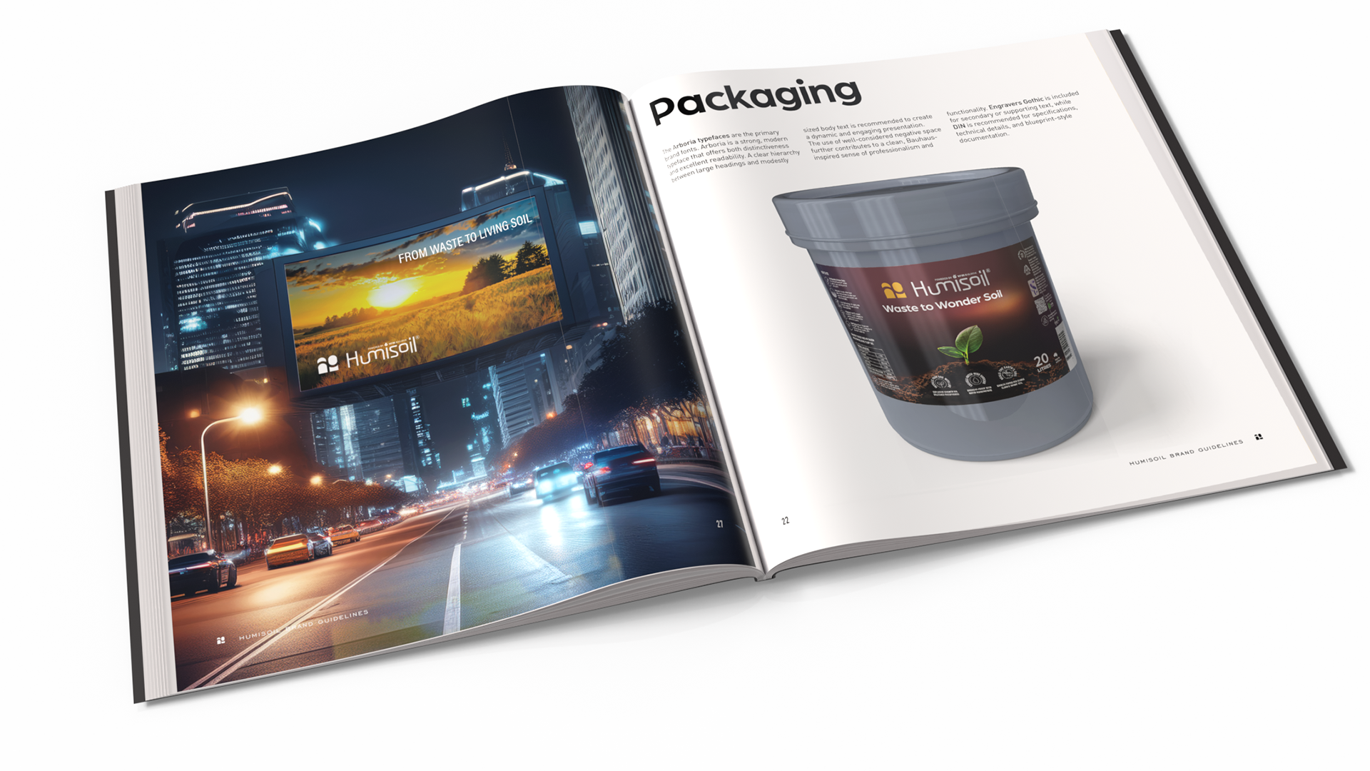 HumiSoil Branding Guidelines Document (Packaging shown)
